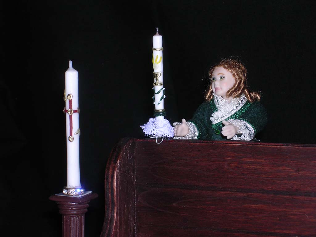 Puppenhaus-Szene: Mädchen bei der heiligen Kommunion.